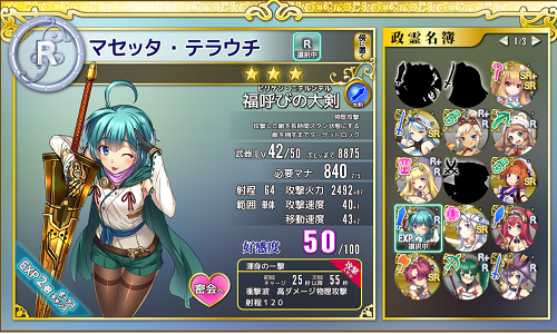 マセッタは経験値2倍デーで、ここまで育ててみました。