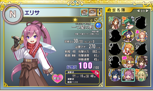 Nキャラは全員入閣済。